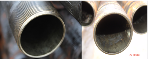 某采油厂CB25A-3、CB25B-5两口井管柱连续使用24个月,管内壁镀渗钨合金防腐层光滑无腐蚀、无结垢现象,防腐防结垢效果优异。胜利油田三年后重复使用率达99%以上。